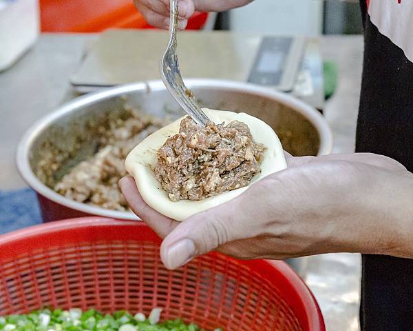 很幸運恰巧碰上胡椒餅剛出爐,看到老闆正在一顆顆的現包下一爐的白嫩生餅。