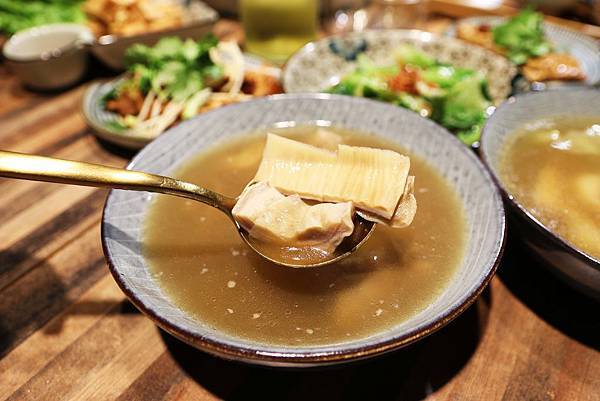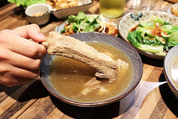 湯內也用了整顆大蒜與許多中藥等等熬製,又濃又順口。肋排肉一看就知道燉煮了許久,