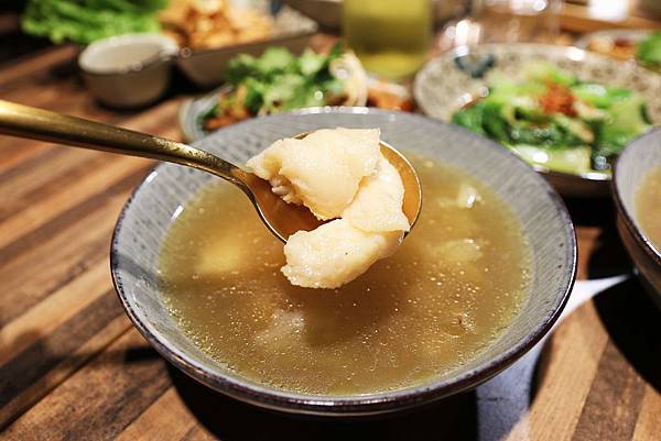 再將新鮮的魚片結合於湯中,湯本身帶有較強烈的口味,