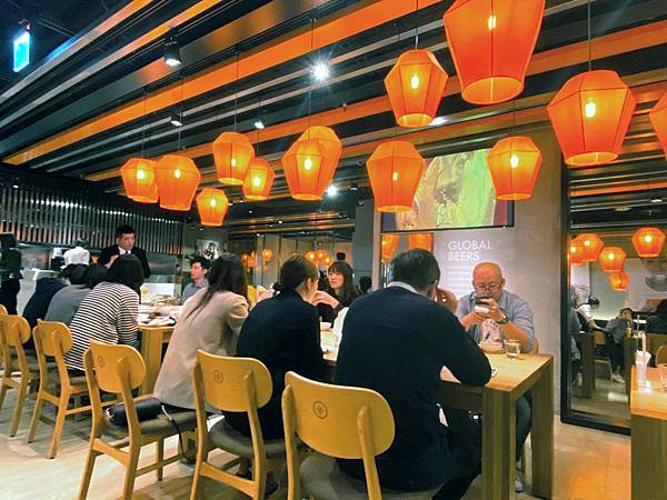 店裝潢採暖色調,又搭配了天燈、壁畫等素材,毫無違和的呈現既現代又中國風的氛圍!