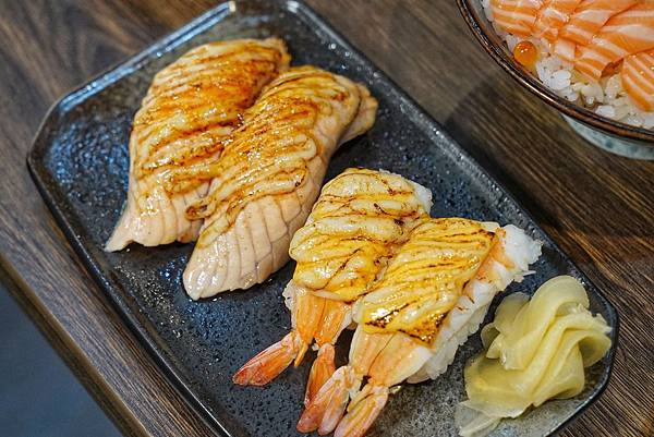 鮮嫩的生鮭魚搭配焦糖、美乃滋炙燒,不僅帶出迷人的風味,而且化口感很強烈。