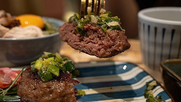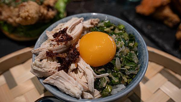 上面有一顆生食級的雞蛋,攪伴在蔥鹽上是絕配。