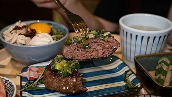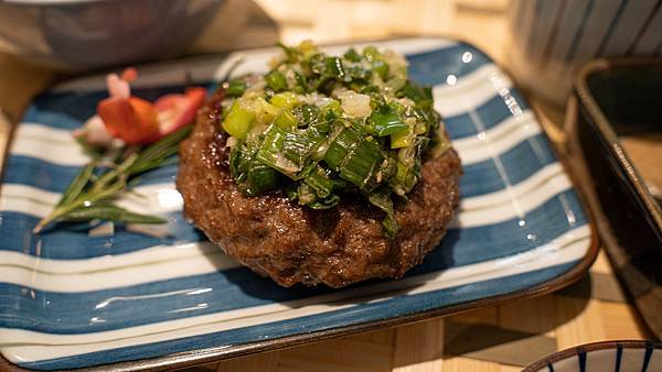 「手工純牛肉堡佐蔥鹽醬定食」$300